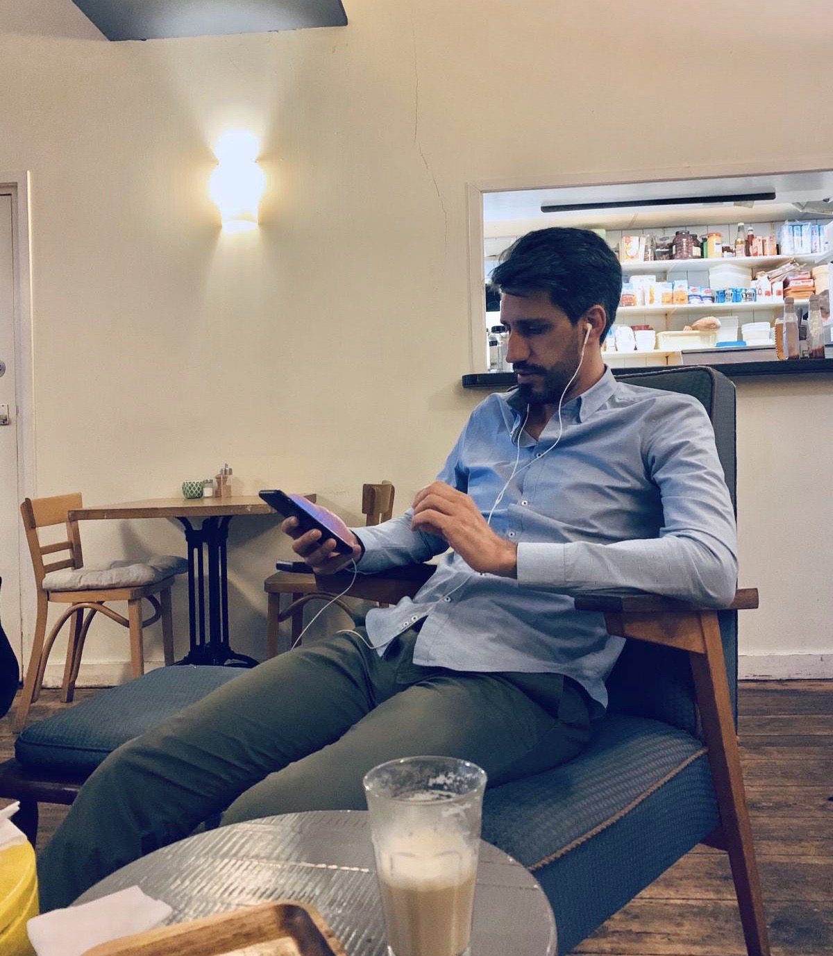 Debajo, fotos de un training virtual desde Santiago de Chile y trabajo sobre un proyecto desde un café en La Haya, Holanda en mi último viaje.